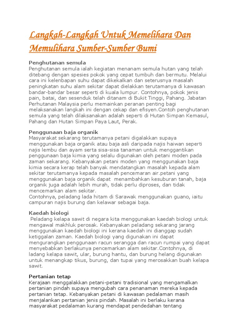 Langkah Langkah Untuk Memelihara Dan Memulihara Sumber Sumber Bumi Pdf